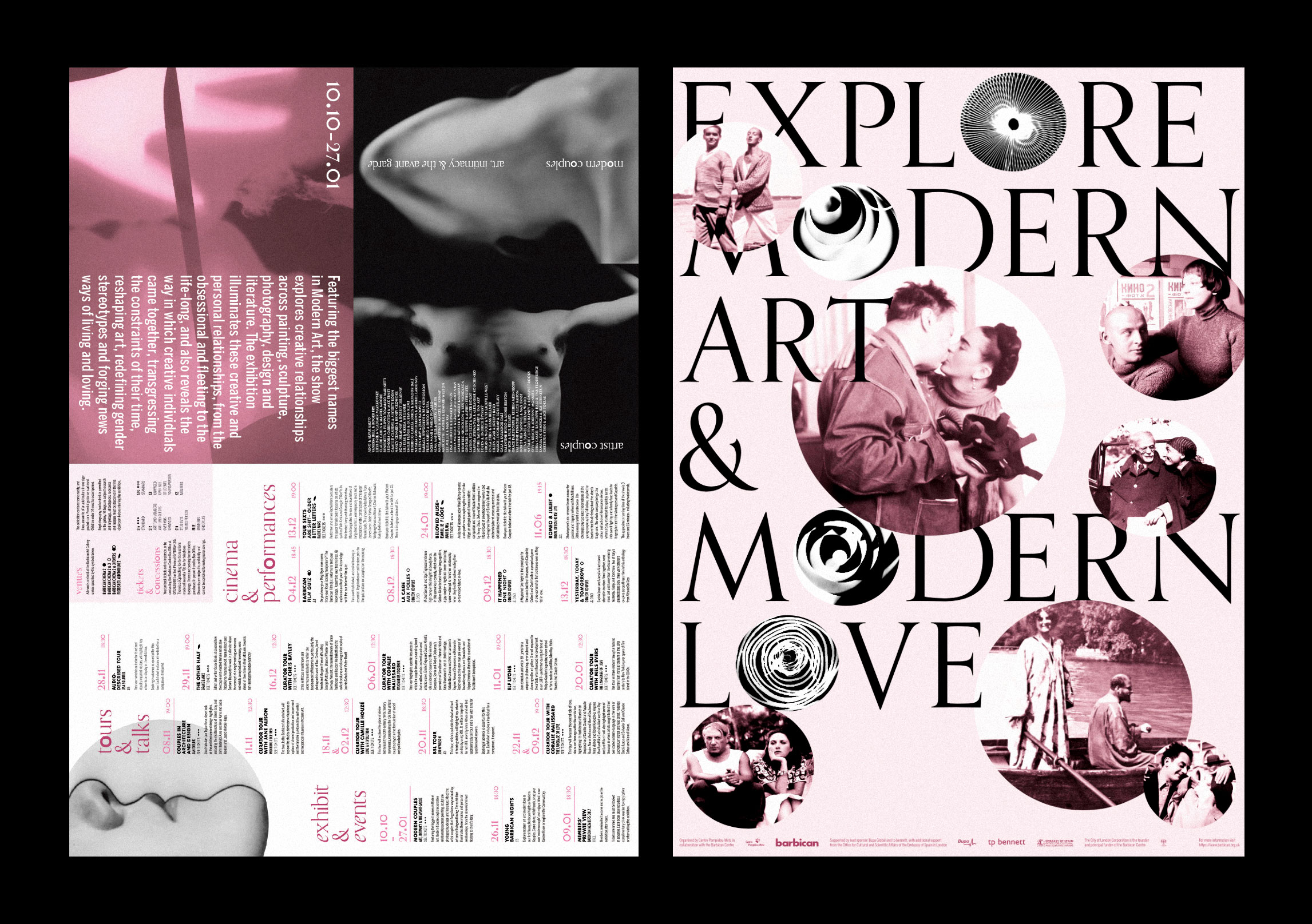 Hypothetical poster design for the Barbican’s Modern Couples exhibit. In addition to subtle playfulness between the typographic elements, Man Ray’s photographs and rayographs were incorporated to demonstrate the intensity of creative intimacy.